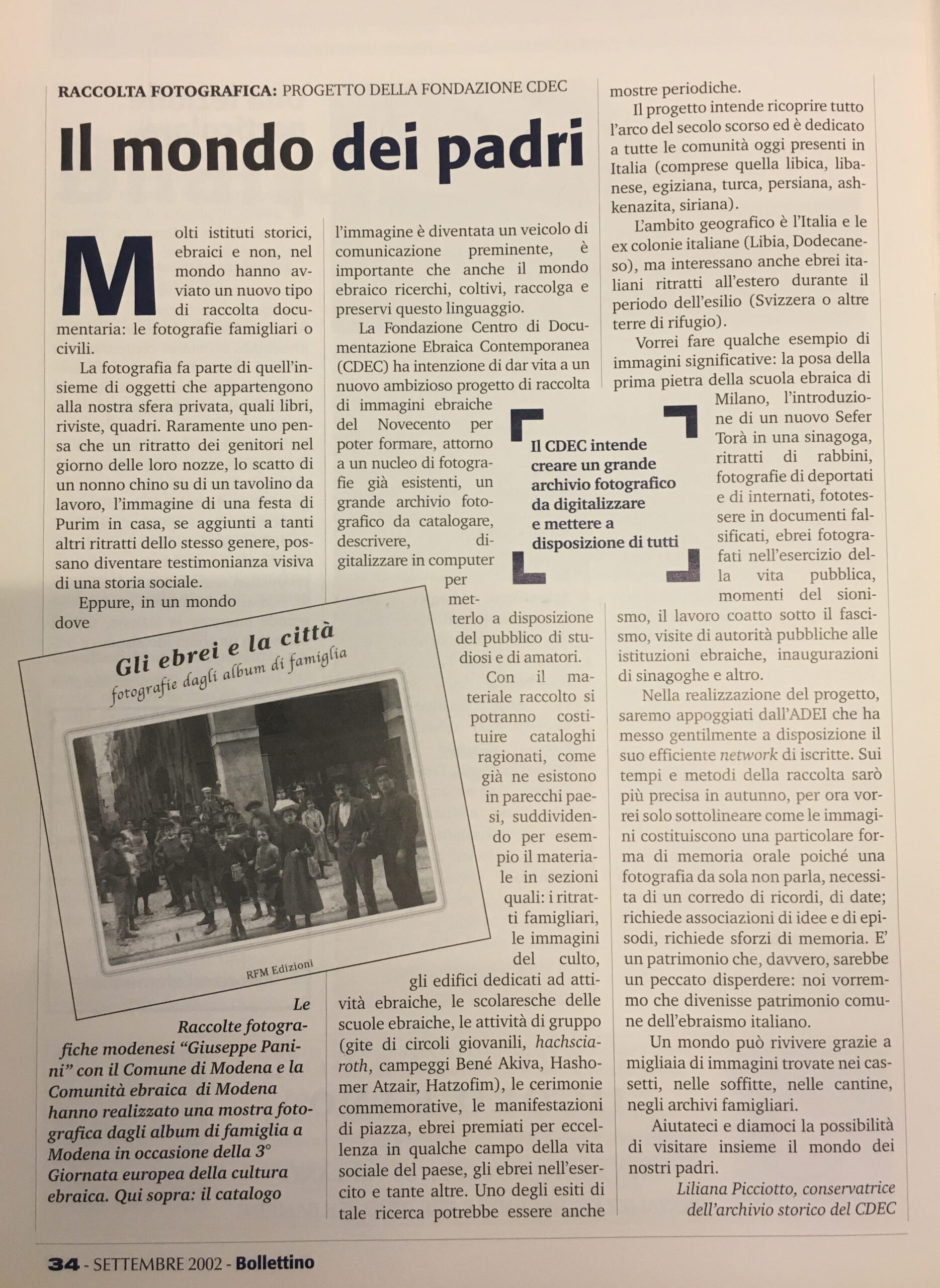 Così, ad esempio, il Bollettino della comunità ebraica di Milano nel 2015 consegnò l’archivio editoriale delle fotografie pubblicate sulla rivista fino a quel momento, centinaia di meravigliosi scatti che documentavano la vita ebraica italiana nei suoi molteplici aspetti. Per organizzare e catalogare appositamente questo enorme patrimonio, che sin dagli inizi venne catalogato anche in forma digitale, furono adottati sistemi informatici avanzati e nel 2010 la storica della fotografia Daniela Scala divenne responsabile scientifica del progetto.